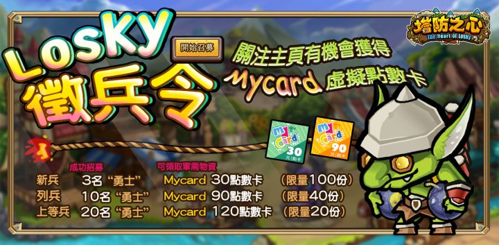 《塔防之心》福利活動:招募勇士贏Mycard點數