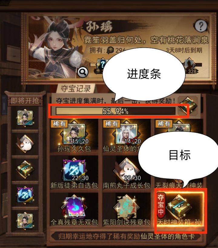 卡池小技巧1.自动进度条:卡池每分钟自动跳1.83的进度,自动进度在大于97.8后会停止自动进度,所以在蹲包的时候可以适当的垫一垫让自动进度最后一跳可以使进度条超过99这样可以省很多小侠客,资源不多的情况下最好别拿第一轮的包,因为第一轮抢的人较多。2.尾刀:尾刀是指进度条最后一下,正常来说需要的小侠客在20-60(理论上来说只要一个也行,但这里我不讲理论),提前把一两个恶霸打残血用单点不要十连