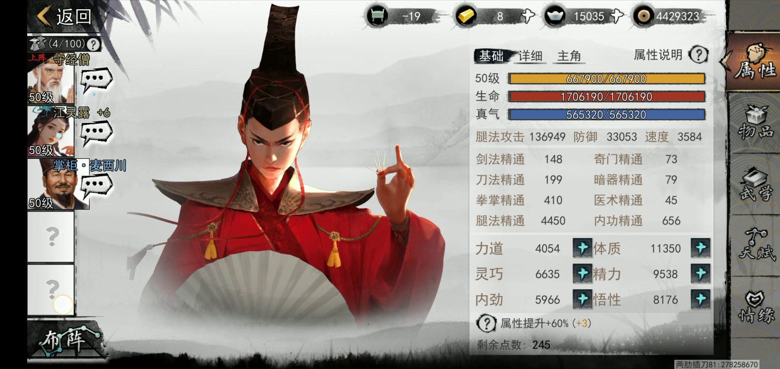 感觉还行,免伤这方面叠的有点少,天赋没选好,有两个完全没用的天赋选错了,完全占格子了汗,至少峨眉暴击九剑是能玩的,两回合打死张少爷。把惩恶叠满,,暴伤还是不错的,可玩性还行