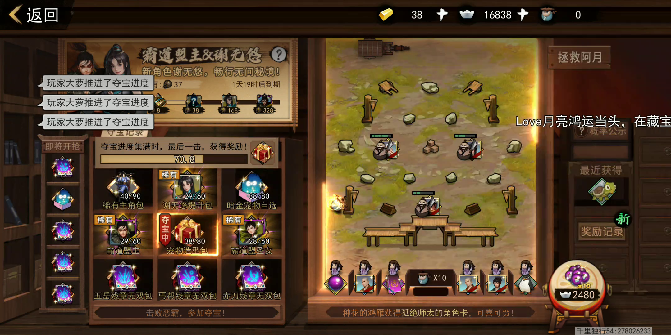 脱坑一段时间回来!运气好,阴了个霸道盟主!发现论坛太极牛逼了!就是看看!发现真的香。 内功和轻功没残页等级太低! 吸得很爽