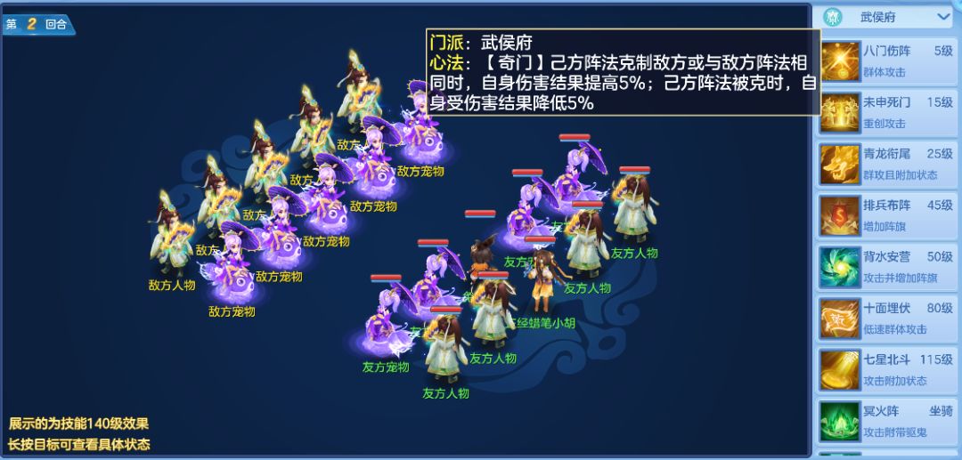 大家听到武侯第一印象是什么呢?我想大部分人都会想到诸葛亮吧?今天我们要讲的门派,毫不夸张的说,玩好的情况下江湖人称幻唐小诸葛,武侯府对于新手来说是一个很复杂的门派,日常秒三伤害系数高,但是没有其他两个法师门派秒的数量多,同时拥有最高伤害的单体法术技能。 一、门派心法 【奇门】:己方阵法克制或与地方阵法相同时增伤5%,被敌方阵法克制是减伤5%,一句话而言:顺风加输出,逆风加生存。 二、常用门派技