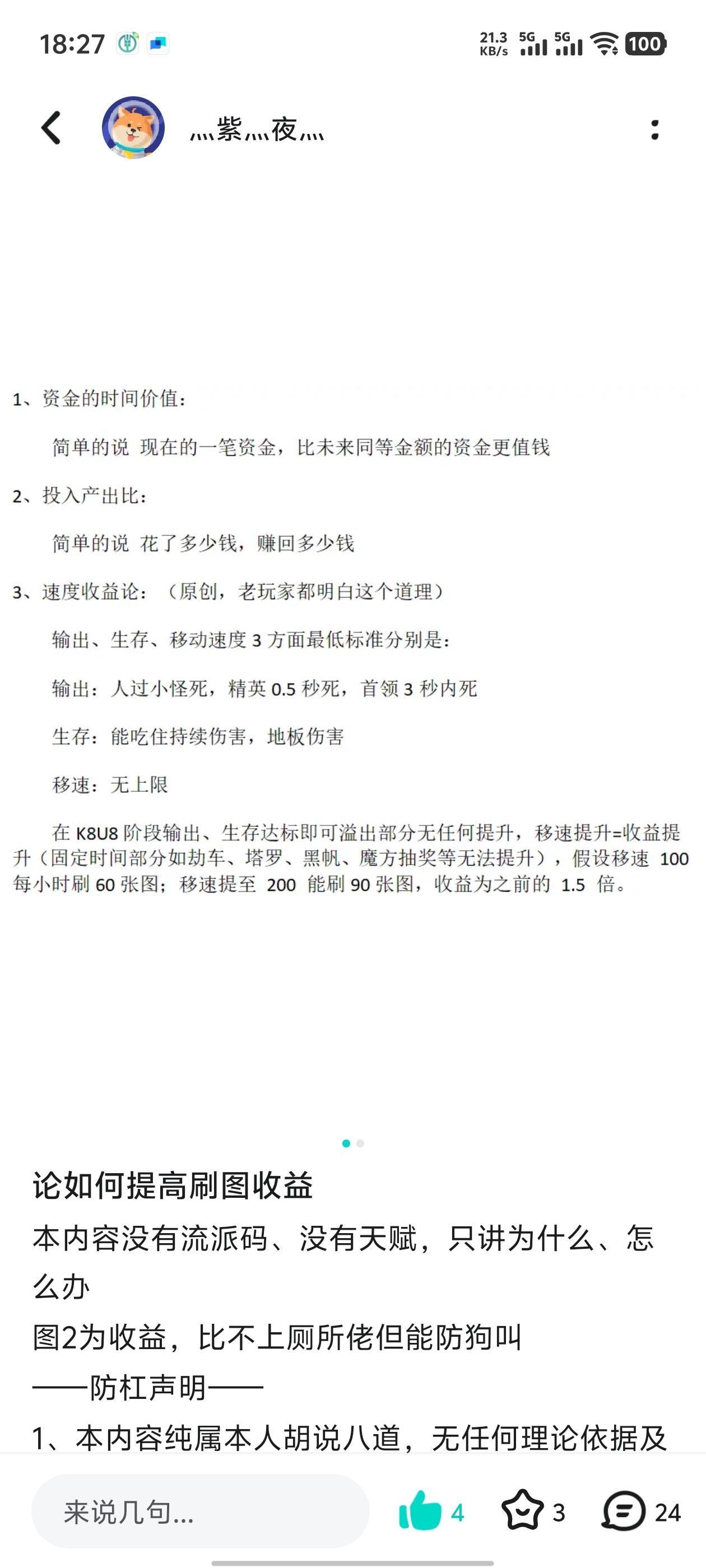 本内容没有流派码、没有天赋,只讲为什么、怎么办 图2为收益,比不上厕所佬但能防狗叫 数据引用该贴,简称 测试贴 https://www.taptap.cn/moment/703350042852852301 ——名词解释—— 字数限制,看图1 1、资金的时间价值: 2、投入产出比: 3、速度收益论: ——问题所在—— 大多数兄弟收益低、没收益、回本之光可以总结为以下5点: 1、藏身处站街王: 刷