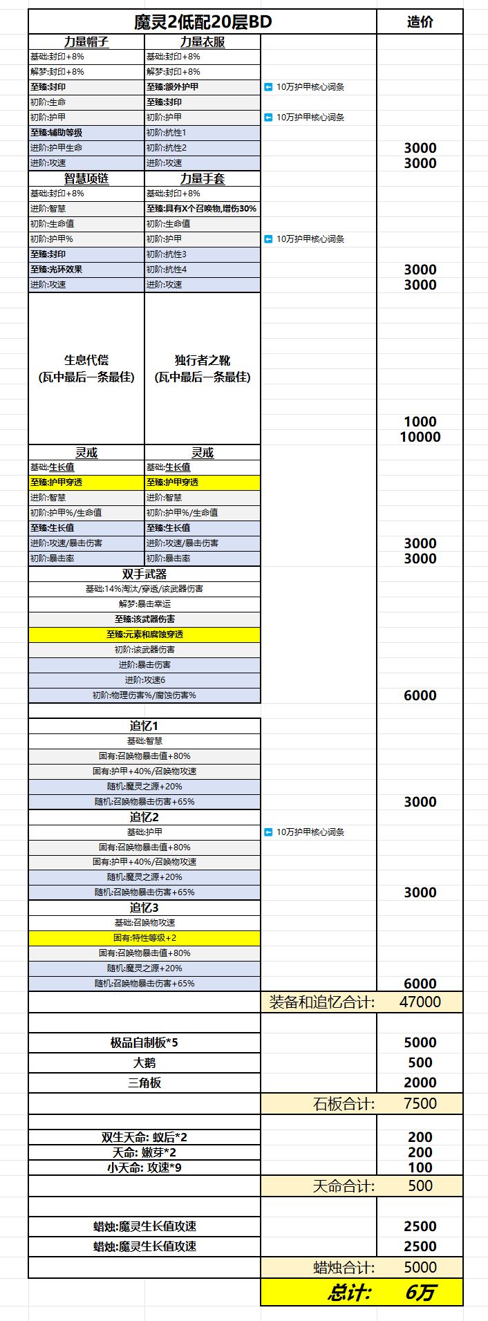 这个赛季没几天了, 交易所6T0装备便宜的不行, 前几天用小号升到90级. 尝试了没有一些贵重物品去打20层, 发现也挺简单的, 分享出来,下面是实战视频 https://www.taptap.cn/moment/685276321944701173 无薯条 无未定 无魔源天命 无高价魔灵之友! 无调香特性腰带 6输出光环!! 站撸!!!