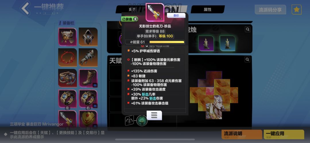 这是我最后一次提升了,针对好多问我的玩家给出一个提升思路和方向,同时尽量降低bd的造价。主要这段时间是尝试板子搭配,最贵的冷眼落叶磐石落叶几万的我也试过,最后试下来,电暴走,导电这个大天赋可以平替落叶飞花,导电作为前缀天赋,后缀可选择的就多了,落叶当然最好,补伤害的天赋还有近在,善始善终,势大力沉,聚能之击,奇幻莫测,世事无常之类的,或者用生存意志或者饮鸩止渴补生存,导电落叶我没买到,不知道上限能