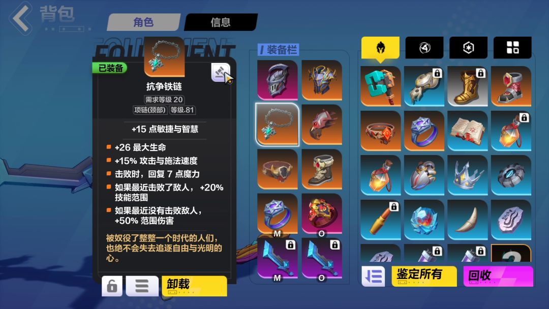 BD细节:https://www.taptap.cn/moment/414054109386114027 和文中相比,技能搭配将暴击伤害换成了标记,装备上的改动:更换了一把炎魔,换成了别人瓦坏的斧子,300火。换了一个双球戒指,200火。