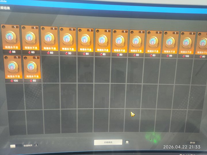 拍卖行里的海潮永不息快被我买完了,就是想试试人鱼带特性的效果,快20次不出一次。呵呵,劝退了