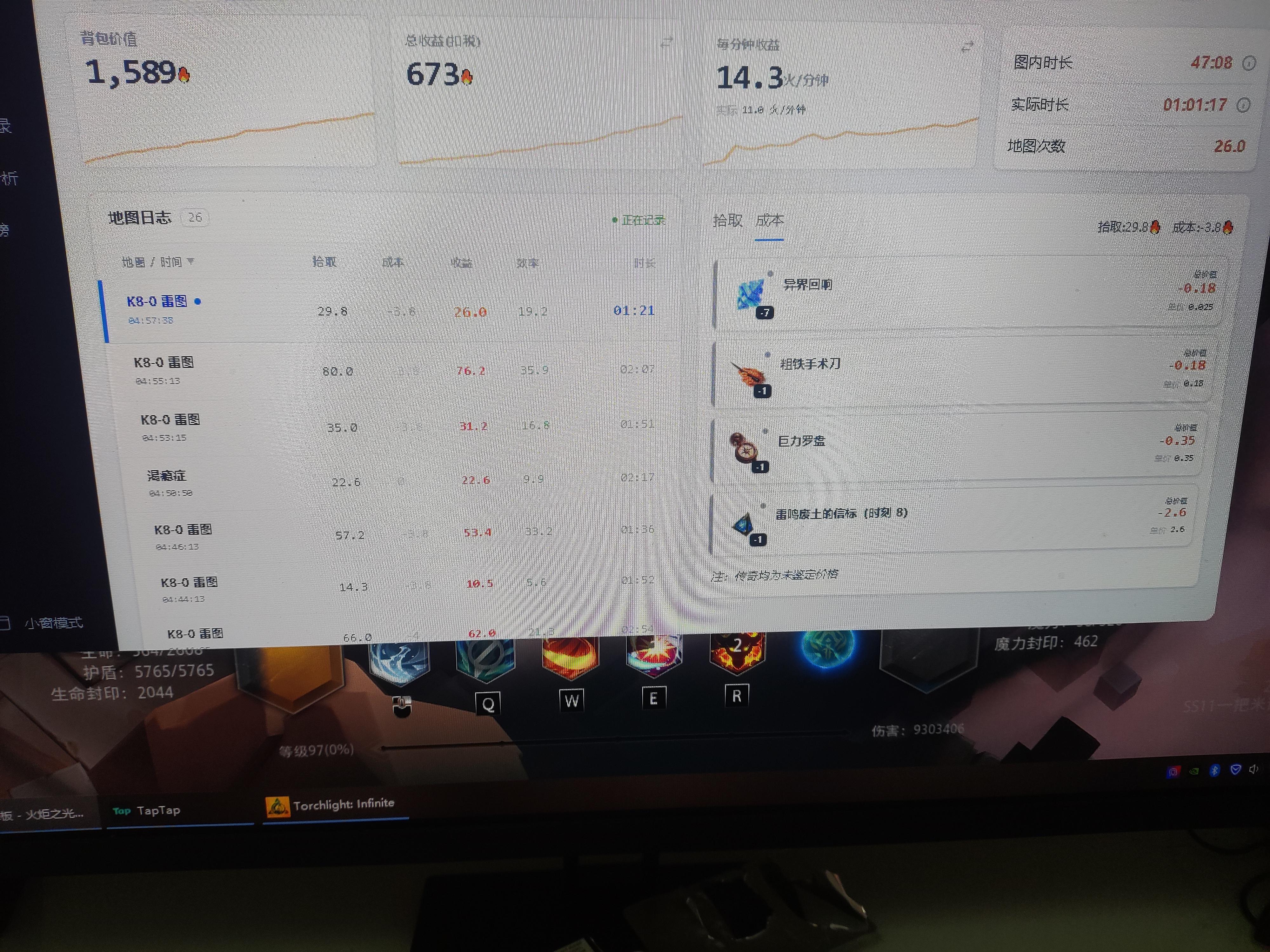 一个小时6-700火左右,一个小时30张图,信标基本上能溢出,我都是寒冰全卖,其他自己刷,策略就是众神➕征战信标➕赛季,赛季我没有赛季宠,紫色宠物也能打收益还行,主要众神打巨力花时间搬两天撤了,之前每个赛季都是第一天7-2,第二天8-2,第三天就幽邃了,这赛季选了个抽象职业,也懒得转生了,每天弄个6.7千🔥吃猪脚饭