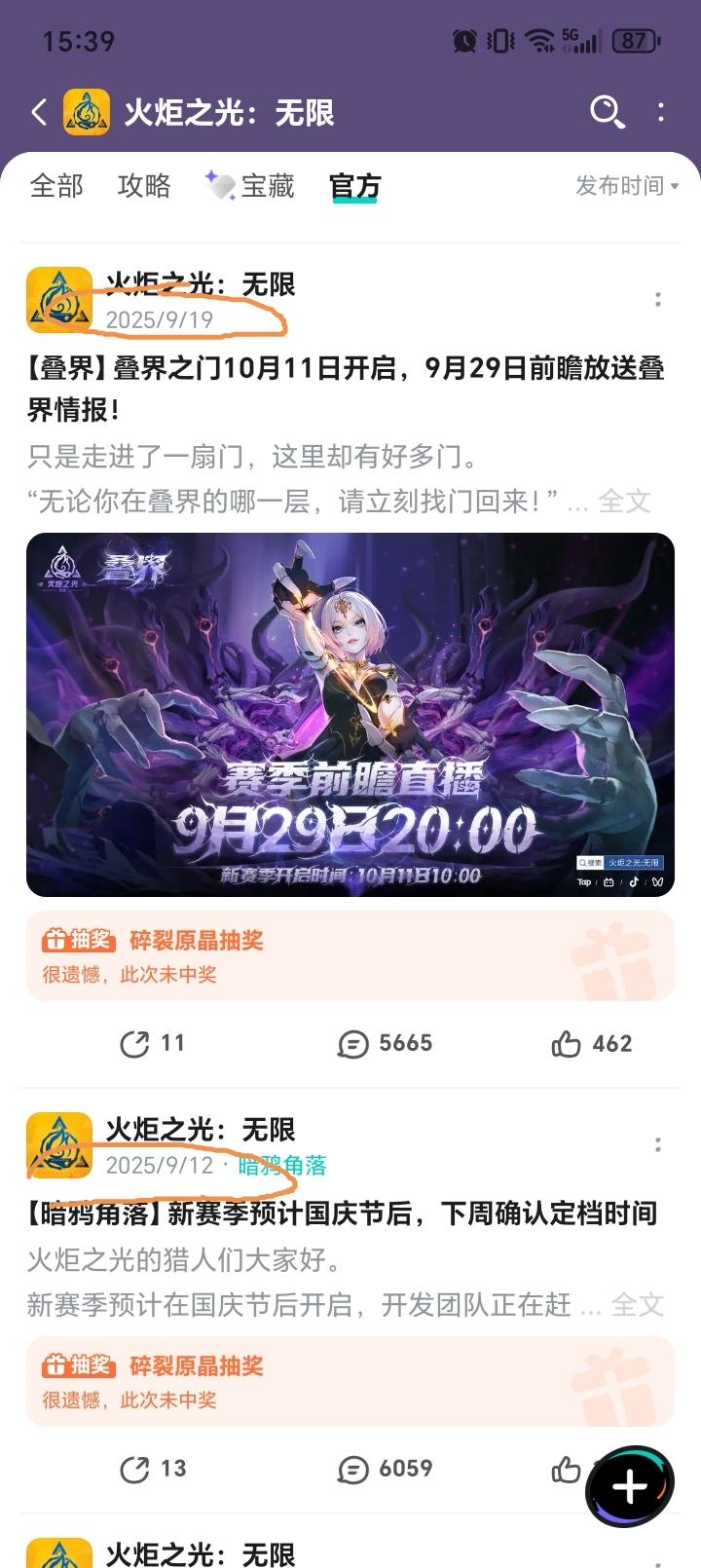 自从官方开始直播开始,新赛季都是官方直播一个星期就不播了,话说,下赛季会不会有改变,变成半个月结束,或者进深空结束,又或者是过20层结束什么的。来点新东西嘛,别老是一个星期就结束,多没意思,虽然说你们没什么活,但是看你们挨各路神喷喷,其实也挺有意思的