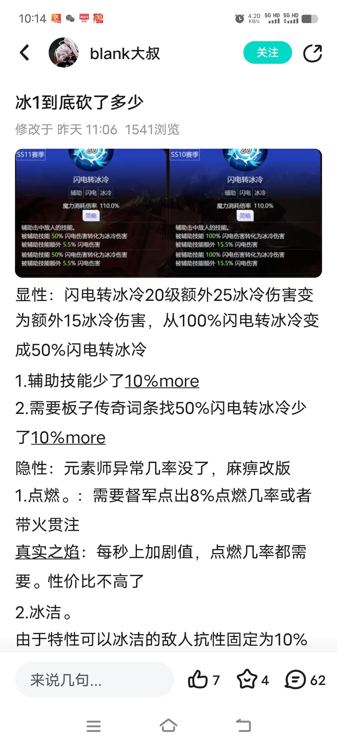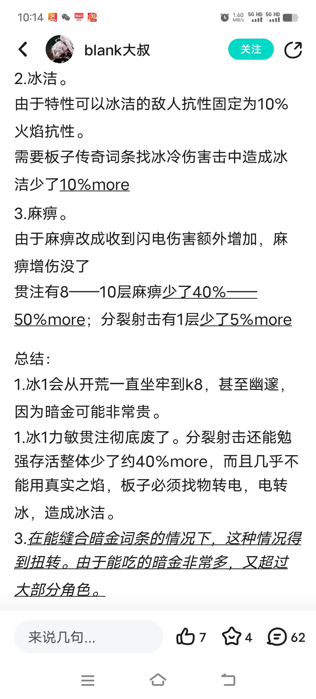 转发一下blank大叔的帖子,发表一下我的看法。blank大叔说的都很对,基本全方位都砍了现在冰1除了攻坚,刷图向基本多少都被砍了,尤其贯注,基本算是新赛季最大受害者。我想说的是事实可能比实际很残酷,blank大叔最后一条意思用新赛季的玩法来弥补,但是新赛季玩法所有人都能用,又不是只有冰1。先不讨论新赛季玩法能不能达到大叔所谓的超过大部分角色,单单造价就已经让贯注无任何优势可言。火炬老玩家都