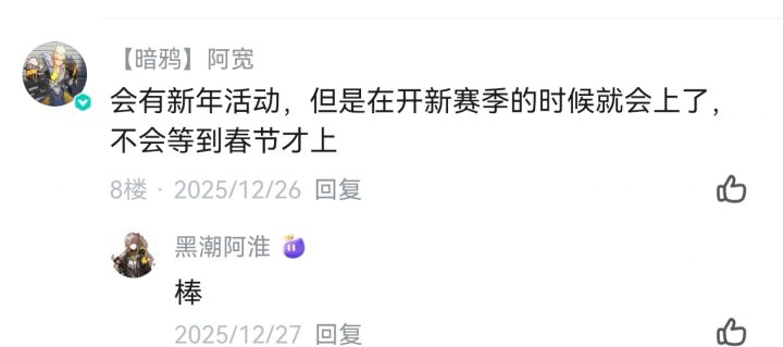 1圆桌时俩策划都异常激动的表示会有春节活动。2按照阿宽的答复,春节活动会在开新赛季就出。3新赛季至今都没见到春节活动的消息。1+2+3推出:火炬之光到底有没有春节活动?