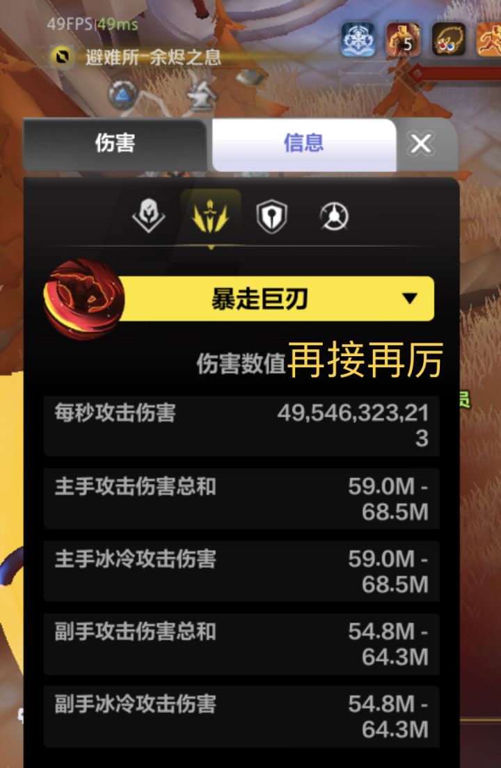 板子入静换了再接再厉后,打桩伤害掉一半,而且是在入静静止1秒后和再接再厉130%暴击值拿满4秒后的情况下测的,就很纳闷,48m换56m打桩伤害居然下降,然后两者刷图体感差不多。面板实时伤害现在是不是不准了?这个是打桩伤害面板,不是人物信息面板。我都是等伤害不跳不波动了之后截图的。