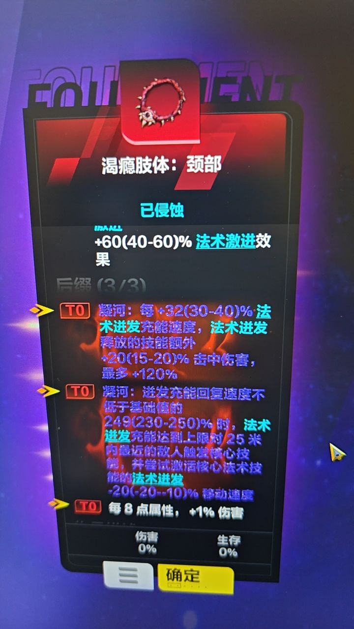 如图所示,此号已毕业,刀刀3兆1秒爆270万生存,100级,此版为终极版本,后续不会再打造了,想提升就得拉造价,我目前游戏内容全通所以就这样了上赛季叠界入的坑,这赛季没抄任何人的BD,从开服玩到现在,全凭自己游戏理解不买火甚至还卖了几万火一步一步自己打火打造此号造价13万左右,具体没仔细算,可能更低,也可能更高。后续提升:重新做个腰带并且能瓦中缝的传奇这里至少40more石板两个自制还有