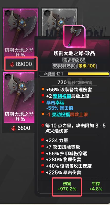 如图所示,此号已毕业,刀刀3兆1秒爆270万生存,100级,此版为终极版本,后续不会再打造了,想提升就得拉造价,我目前游戏内容全通所以就这样了上赛季叠界入的坑,这赛季没抄任何人的BD,从开服玩到现在,全凭自己游戏理解不买火甚至还卖了几万火一步一步自己打火打造此号造价13万左右,具体没仔细算,可能更低,也可能更高。后续提升:重新做个腰带并且能瓦中缝的传奇这里至少40more石板两个自制还有