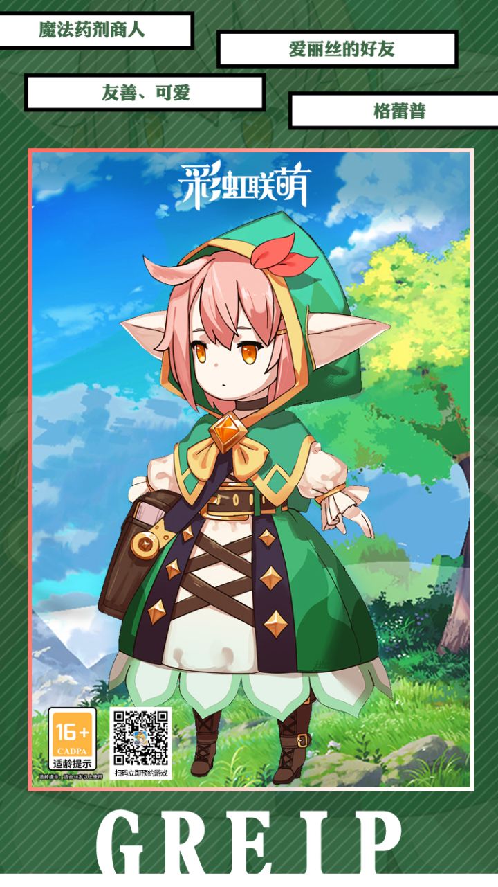 想必勇者们都知道,在盖尔兰德大陆冒险光靠自己一个人是远远不够的。萌宠和伙伴都是我们探险旅程中不可或缺的一部分。那今天小萌就带大家一起来了解一下盖尔兰德大路上的伙伴吧~种族精灵族身份魔法药剂商人性格气质友善、可爱背景介绍爱丽丝的好友,魔法药剂商人,总会帮助爱丽丝收拾烂摊子。更多精彩内容 快来这里发现如果喜欢我们游戏那就快点关注我们吧。欢迎随时给我们评价、留言~官方微博:@盛趣