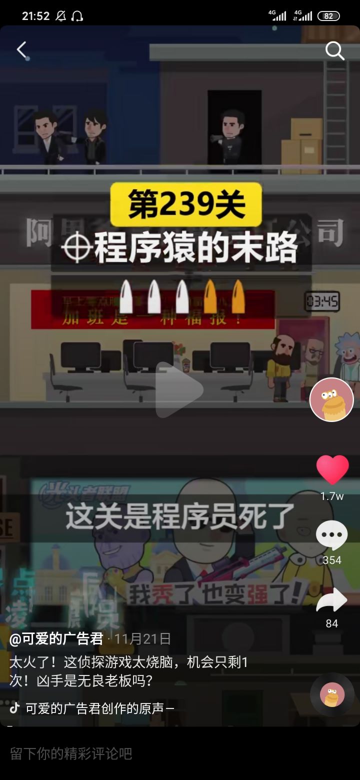 几年前在抖音玩过这个游戏,不知为何,现在突然很想玩,也不记得名字。上抖音找了半年,搜索狙击小游戏,狙击火柴人等等,硬是没找到。上deepseek,豆包描述游戏让它找,搜了很多游戏也不是。最后你猜怎么着?我发现手机里还有个夸克,没抱多大期望搜,结果还真被我搜到了。我就是死也想不到他的名字叫光头探长#光头探长