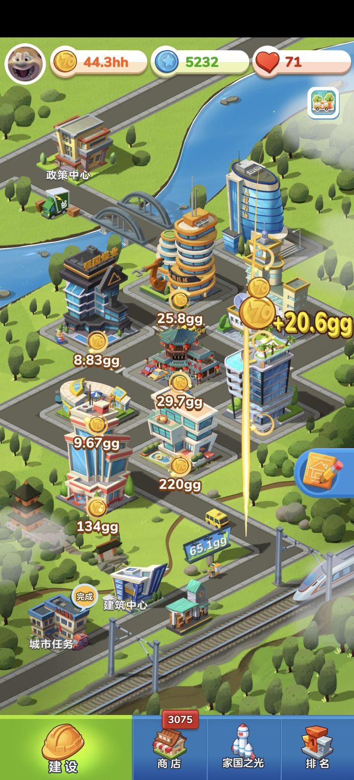 4.这并非是一个单纯升级建筑物的放置游戏,高铁拉货才是王道,所以时间充裕的话一定要把当天的货拉完,可以得红包和相册用于提高建筑星级和增加收益buff