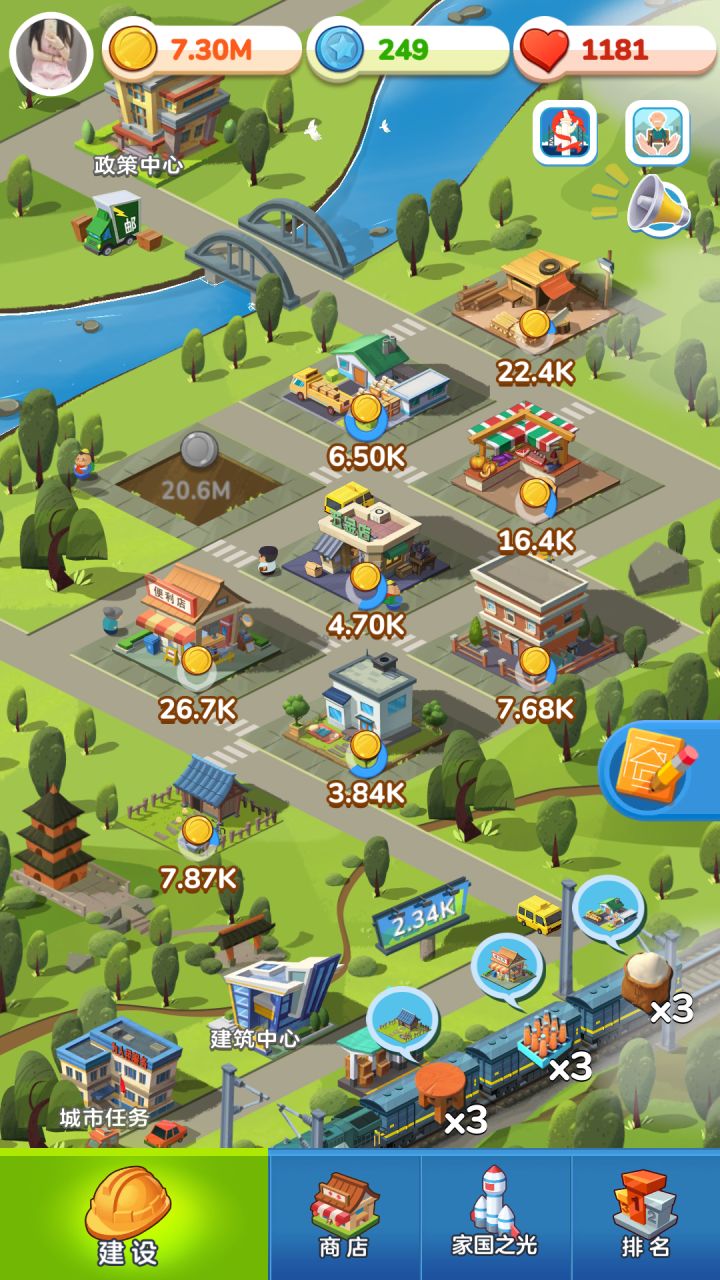 享受放置乐趣,共建美丽家乡趣味建设家园从零开始,把一块光秃秃的地皮一点一点升级成高楼大厦,看着整个城市慢慢的充实繁华,成就感真的超足!完全没想到一个简简单单的放置类城建游戏居然还能让人上瘾。果然付出之后获得回报的满足感才是最充实的。希望自己有朝一日也能为家乡的建设贡献出更多的力量!建筑组合搭配多种策略玩法从开始简单地摆放建筑,到后来不断探索建筑的搭配策略、升级建筑精致度来增加城市收入,来让