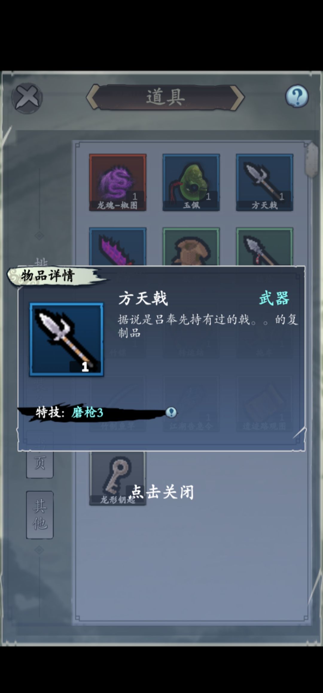 蓝武器加15对应发挥,可以从侠客那里根据好感度达到泛泛之交获得,送的武器应该是根据侠客品质最高的功法或者本身擅长的类型 这人是送的枪 这人送的刀 不排除品质更高的人送的东西更好,不过我估计都打不过