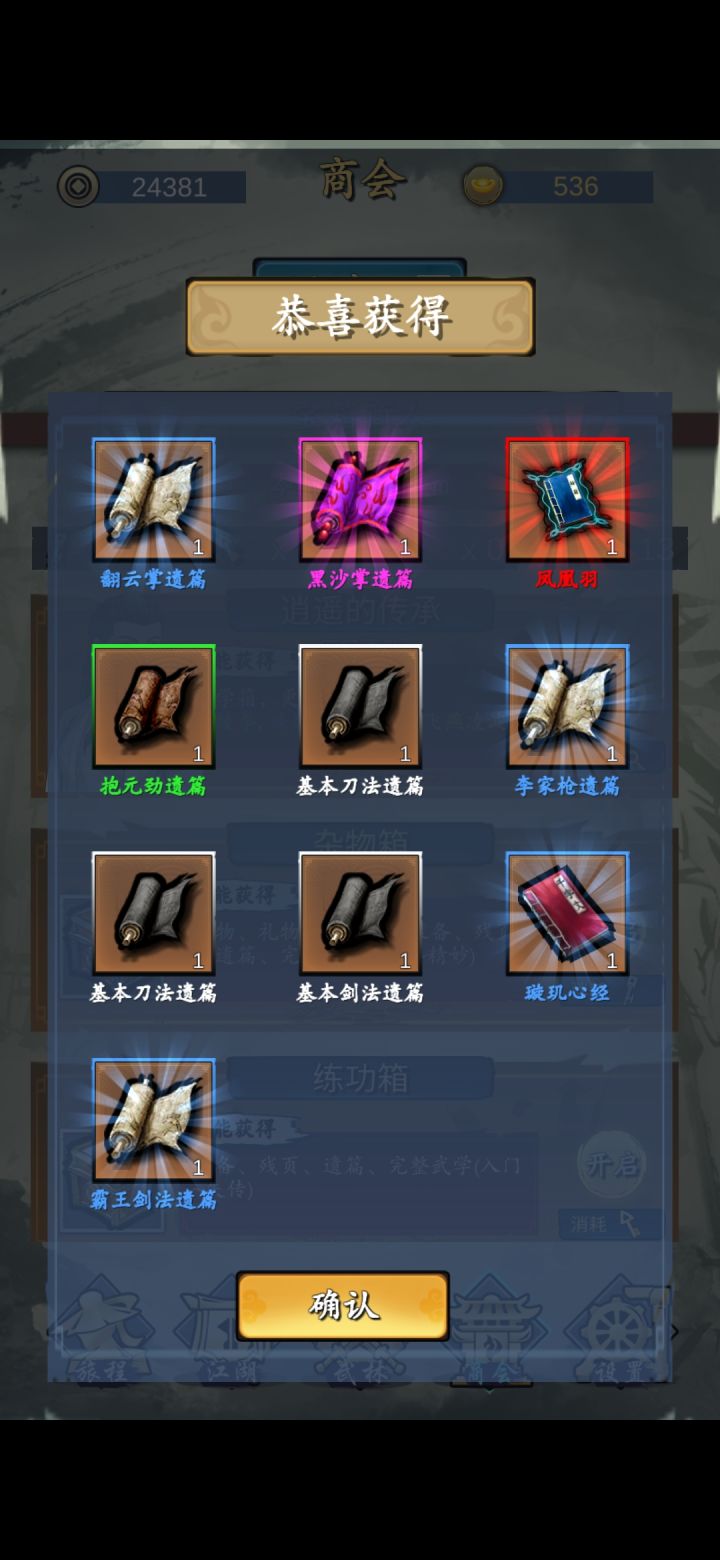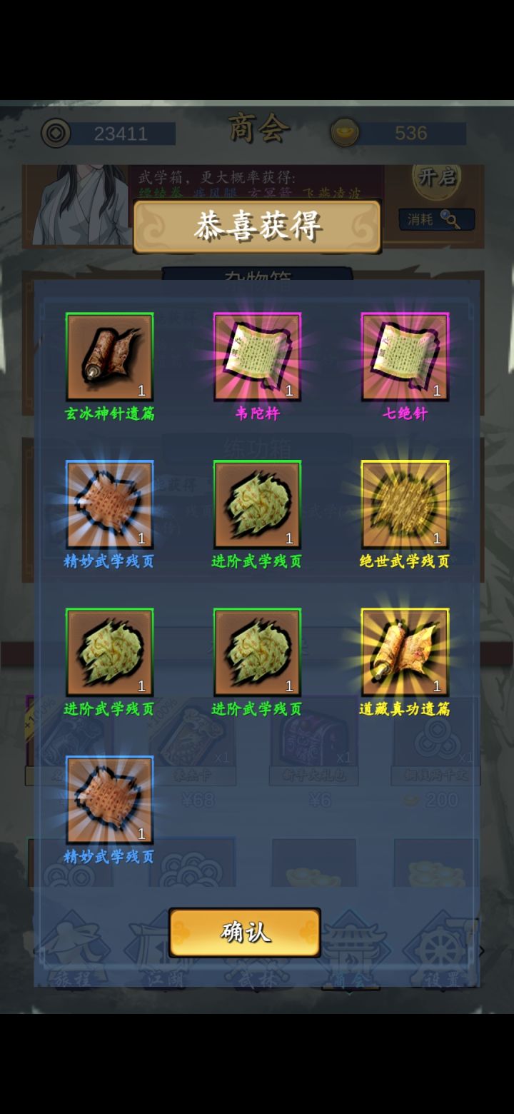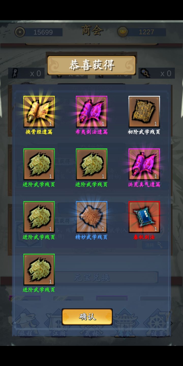 然后刷武功,我觉得一个金武或者一个蓝内足以,红没必要,因为14天你拿了也养不起,需要残页支持的。