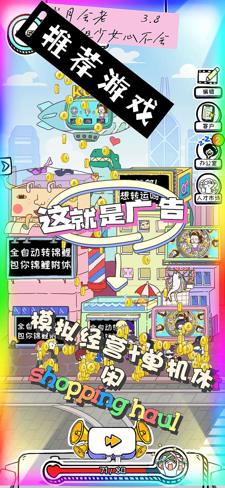 😜《“这就是广告”:创意无限的经营之旅》😜🎮嘿,亲爱的小伙伴们!今天我要给你们推荐一款超级有趣的休闲单机模拟经营手游——“这就是广告”!💡在这个充满创意和挑战的游戏世界里,你将成为广告界的大咖😎!🎯游戏玩法新奇又丰富!首先,你需要组建自己的广告团队👥,招募各种有才华的员工,比如创意策划师、设计师、营销专家等等。然后,根据客户的需求和目标,策划出独特而吸引人的广告方案📋。🎉你可以发挥自己的想