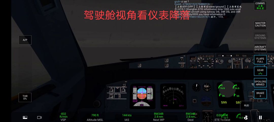 驾驶舱视角降落