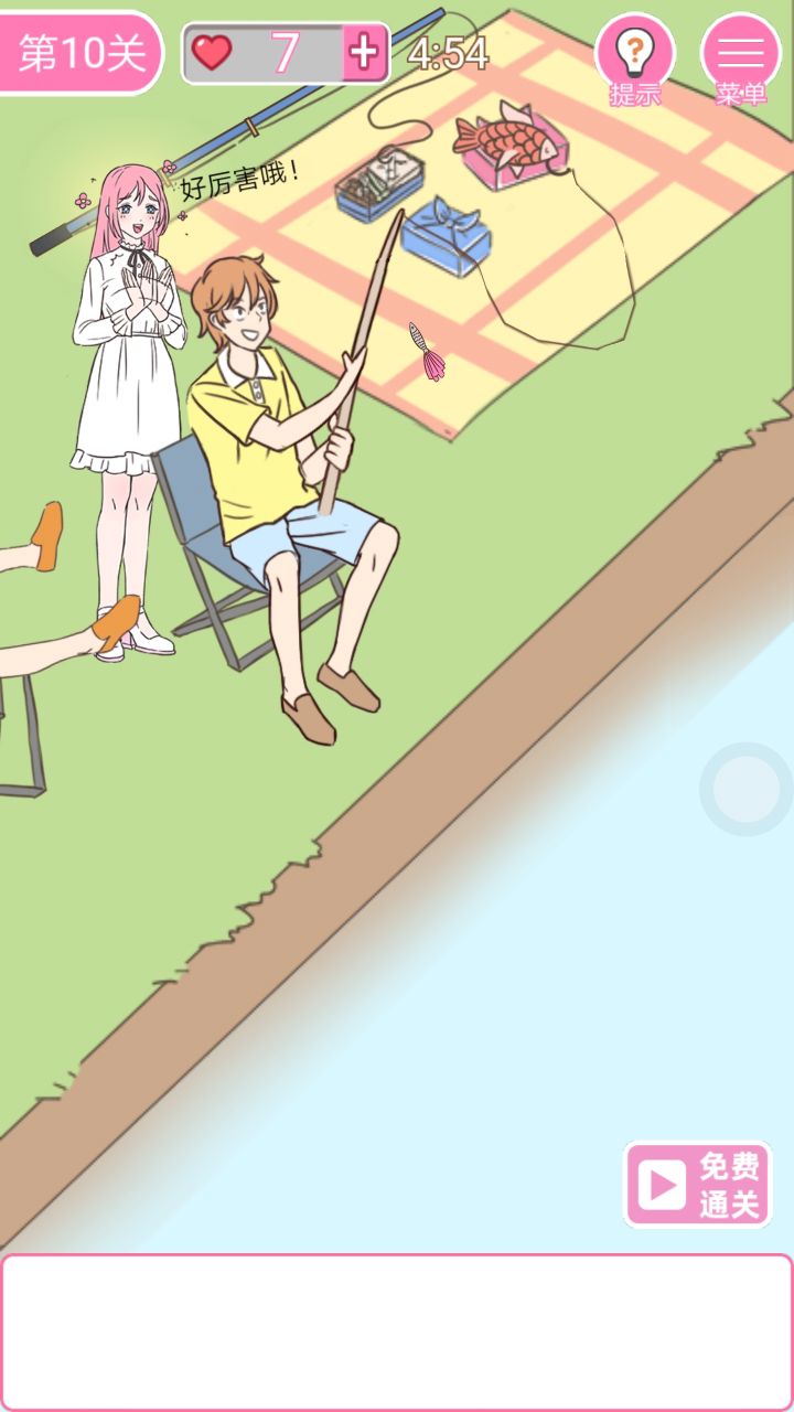 首先确实能够感受到策划的直男气息,我是蓝的,是的非常♂健壮的那种正常男人(ಡωಡ)然后就是吐槽一下,首先这个第十关,基友钓起来之后的表现有点婊。。。第十二关,男主的帽子是绿色的。。。不知道是不是谁有恶趣味想要玩个梗还是啥的。。。然后整体故事还是会透露出有点悲哀的赶脚,懂的人会懂,这个就不深究了总而言之除了上面两个整体还行,除了一些小BUG之外,也没有什么缺点,无聊的同学们可以整整PS: