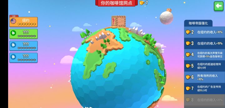 今天总算把咖啡全研究满了,发现最后一个咖啡才是最赚钱的,所以修改下攻略。玩了两天,一直在冲纽约的店,其他的店面都没有玩,主要只要点面没开,卡池就那么大,有利于把纽约的咖啡抽满。这游戏我觉得不像是个挂机游戏,因为我的游玩过程中感受到,挂机真的没意义。为什么说没意义,因为我十分钟重开一次,获得2500点金豆豆,挂机一晚上回来才涨不到500的豆豆。不断的重开,每一次重开都能升级传奇员工,升级后的