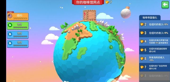 今天总算把咖啡全研究满了,发现最后一个咖啡才是最赚钱的,所以修改下攻略。玩了两天,一直在冲纽约的店,其他的店面都没有玩,主要只要点面没开,卡池就那么大,有利于把纽约的咖啡抽满。这游戏我觉得不像是个挂机游戏,因为我的游玩过程中感受到,挂机真的没意义。为什么说没意义,因为我十分钟重开一次,获得2500点金豆豆,挂机一晚上回来才涨不到500的豆豆。不断的重开,每一次重开都能升级传奇员工,升级后的
