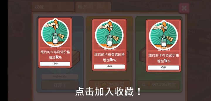 今天总算把咖啡全研究满了,发现最后一个咖啡才是最赚钱的,所以修改下攻略。玩了两天,一直在冲纽约的店,其他的店面都没有玩,主要只要点面没开,卡池就那么大,有利于把纽约的咖啡抽满。这游戏我觉得不像是个挂机游戏,因为我的游玩过程中感受到,挂机真的没意义。为什么说没意义,因为我十分钟重开一次,获得2500点金豆豆,挂机一晚上回来才涨不到500的豆豆。不断的重开,每一次重开都能升级传奇员工,升级后的