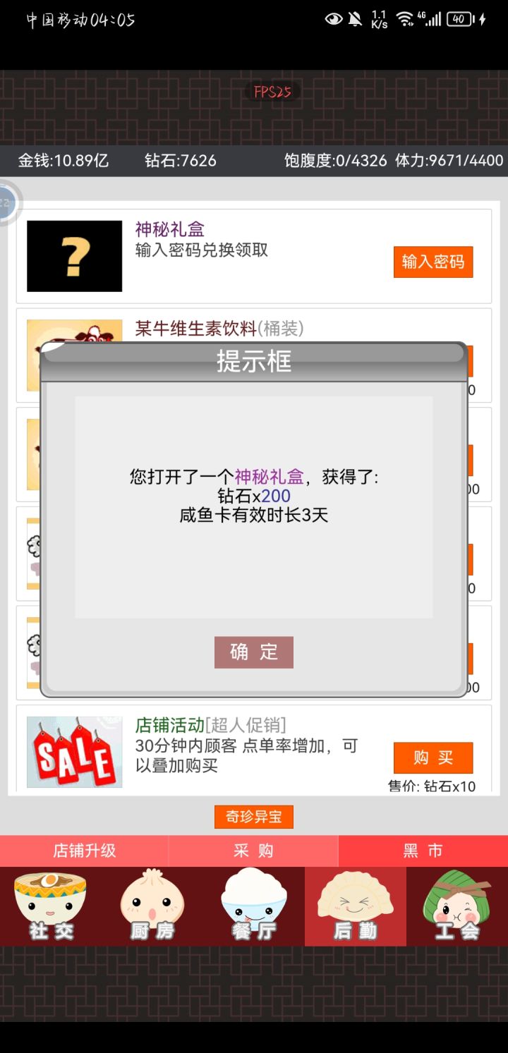 我猜很多人玩游戏之前都会先找攻略,找礼包码然后一股脑全换一遍。在美食家千万别这样!为啥?不然你就会像我一样,领完礼包码瞬间多了2w体力然后疯狂搓菜搓到哭。无论是礼包码还是升级礼包等到没体力或是需要体力的时候再换。别奔着奖励多多一股脑全换了!!真的!!!真的!!!别!!!以下是游戏礼包码以及礼包内容永久神秘礼盒:中华美食家礼盒内容:钻石x200 体力恢复5000 料理笔记x500