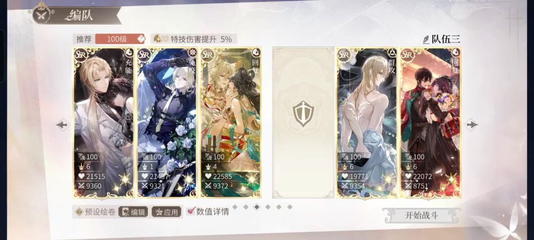 只求通关不求完美~ 完美通关条件: 入战ssr数量≤3; 不携带助战。 关卡内容: ·射手(中) 不破无敌闪避,特技对群,减疗2回合,不免疫任何debuff。 ·麋鹿(左、右) 不破无敌闪避,特技没伤害,给队友回血清除属性衰减,不免疫任何debuff。 ·两边血量低比较好打,特技打满也没伤害。先打右边,打完打左边,打右边时伤害如有溢出会自动选择打左边,打完打中间。 ·有控制类技能都可以给,