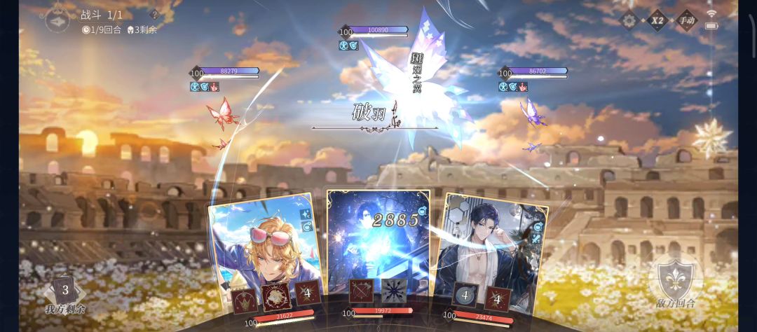 只求通关不求完美~ 完美通关条件: 入战ssr数量≤3; 不携带助战。 关卡内容: ·粉蝶(中) 不破无敌闪避,特技对单,退条并控条,不免疫任何debuff。 ·梦蝶(左、右) 不破无敌闪避,特技对单,不免疫任何debuff。 ·两边血量低比较好打。先打右边,打完打左边,打右边时伤害如有溢出会自动选择打左边,打完打中间。 ·可以多放几张卡赌一个主卡不被特技打。 ·在中间放特技前用掉自己的特