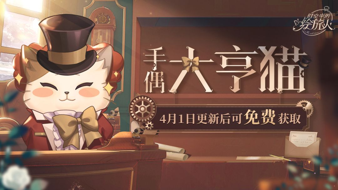 全新乐园手偶皮肤[大亨猫]限时免费领取! 「喵,这朵花,献给最可爱的市长。」 ★活动时间:4月1日更新后-4月8日5:00 ★4月1日更新后-4月3日,每天早上10:00,小画家们可在邮箱中领取邮件[乐园礼帽]x1,集齐3个[乐园礼帽]可在采购商城乐园重建分页下兑换手偶皮肤[大亨猫],大亨猫在活动复刻前暂无获取途径。 ※注意:邮件、[乐园礼帽]道具、兑换途径将在活动结束后消失,记得及时领取哦。 —