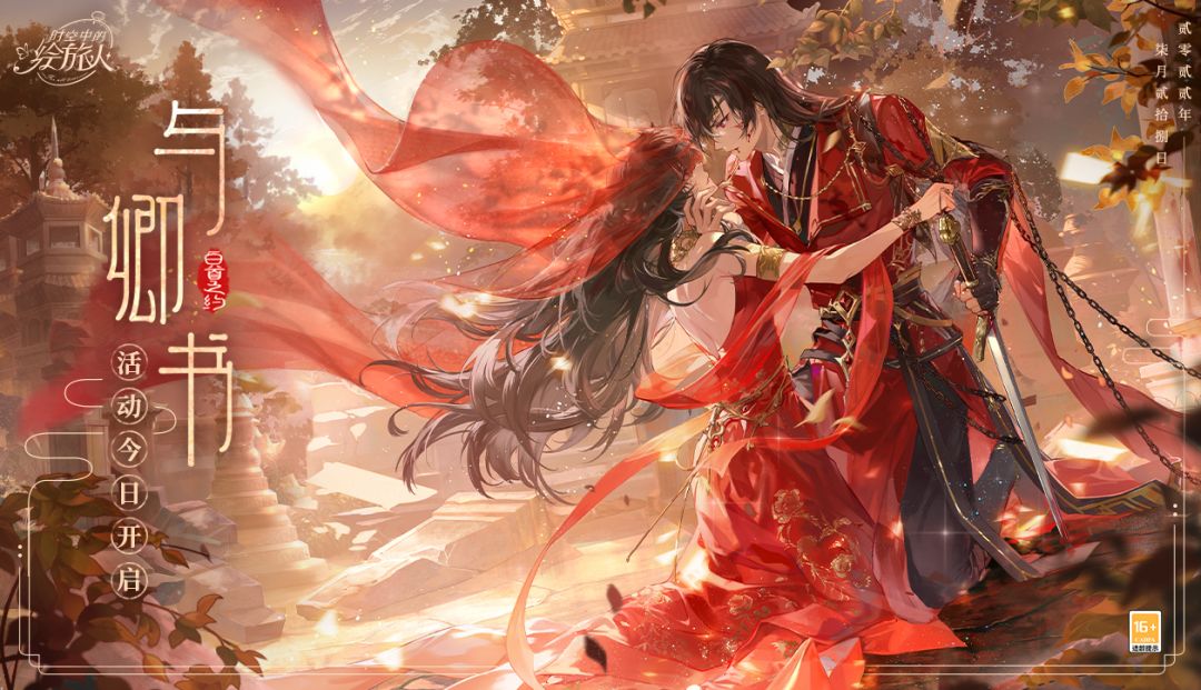 鸳雁继夜传情,两心缔结佳期; 长街锣瑟鸣奏,市肆百里披红; 盈盈凤冠霞帔,双双合卺许月; 红书款定,白首相盟,与卿世生厮守。 ★全新七夕活动「与卿书」将于7月28日更新后开启。情丝深缔,眷属同心,共话烟火人间。 ※ 本次活动为小画家准备了丰富的活动福利,包含登录累送十连、七夕礼赠活动及非遗联动玩法等内容,绘制奖励也将特别升级,更多福利将陆续公开,敬请期待~ ———————————————— 【艾因