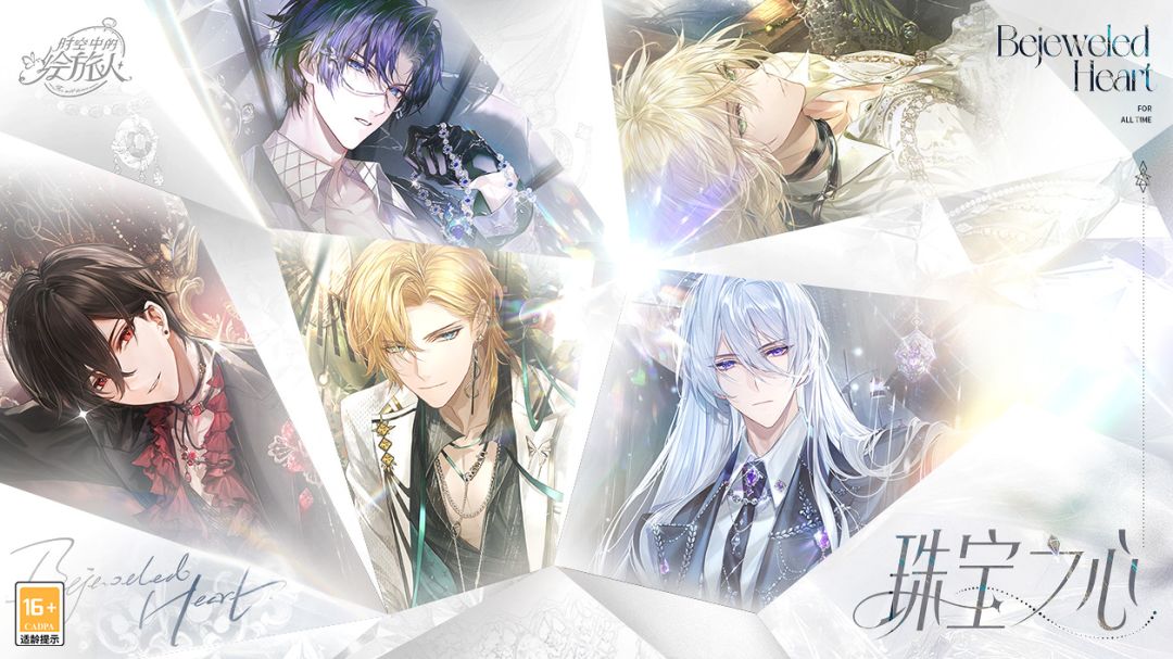 ★全新活动「珠宝之心」现已正式开启,活动将持续至8月1日05:00。 ———————— 【全新活动「珠宝之心」7月13日开启】 ★全新活动「珠宝之心」将于7月13日更新后开启。暗流汹涌,浮光猎心,绿酒红灯的夜晚,就让恒久流传的璀璨,记录惊心动魄的此刻。 【时空中的绘旅人×郭培 高定礼服联动公布】 ★本次「珠宝之心」展览会很荣幸邀请到中国高定第一人郭培老师,担任五位男主的“特邀形象顾问”。7月13日