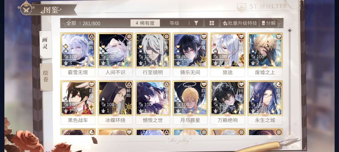 艾因:策略卡,本卡池最优先,狂暴+冻条,还带点减防。 叶瑄:坚毅策略卡,本卡池次优先,坚毅+单体拉条+加攻+受伤加深,还自带50特技进度。 司岚:不错群攻,次优先。加攻减防+单体拉条,特技命中回条,适合站场。 罗夏:中规中矩。 路辰:带点辅助作用的单体花瓶。 累充艾因:强大至极的策略+站场卡。单体退条冻结+90%全体冻结+单体拉条+解除无法行动+60%血条件全体无敌。特技回血又增伤。好一个大杂脍!