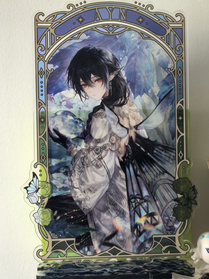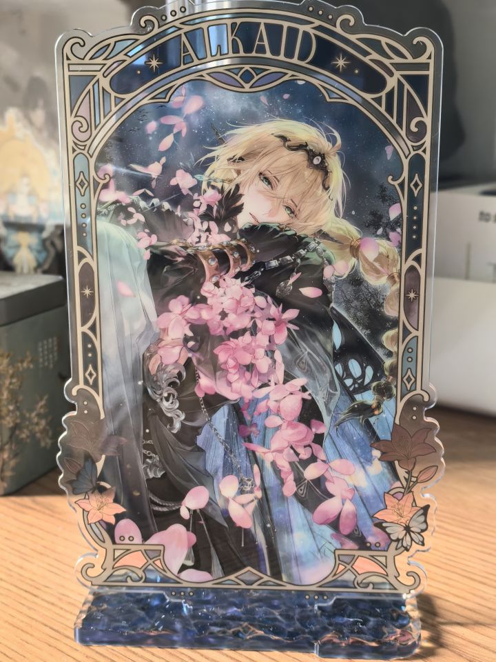 这动作一出,这句话就自然而然的出现在脑子里。发一下近期到手的,不完全统计的新周边。明明记得年前才买的夹子,但现在没了。纸质周边没办法上墙,只能先堆盒子里,等买到夹子之后,我想起来再整理了。这一轮生日礼盒盒子是挺好看的。镜子立牌果然鸡肋只能特定角度才能看到两个服装,以及我确实没有办法同时把两张脸照清。本轮生日吧唧有了新的小巧思?吧唧背面有了艾因个人专属水印,这是我在上一轮没有看到的(特意给司
