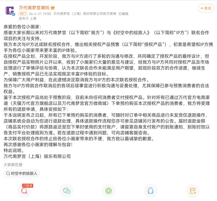 因联名“不符合期望”,官宣直接取消合作