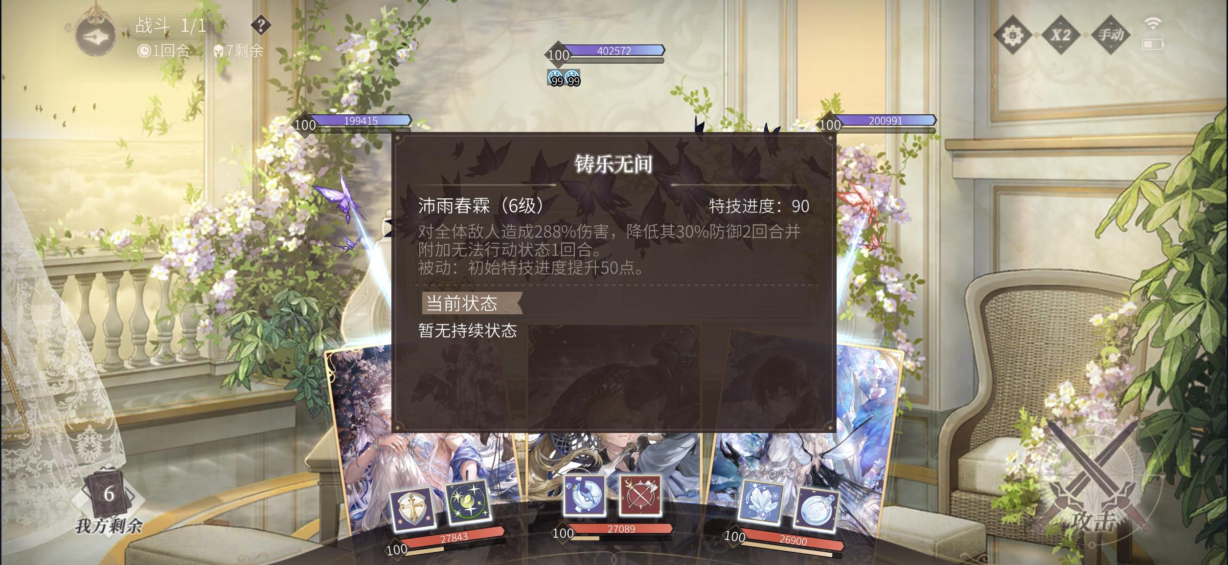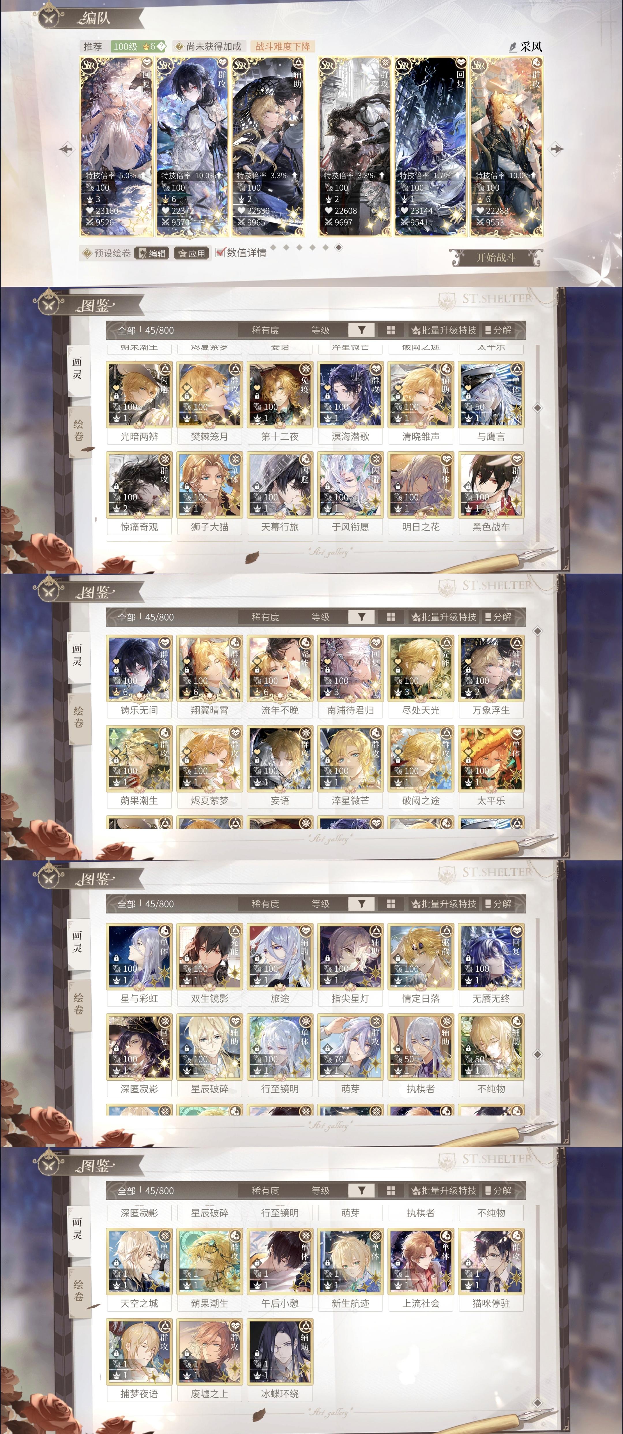 基本上除了多云15,难度不大,可以沿袭之前的阵容。自动阵容思路就是【高战➕策略➕奶卡】。①②号位高战百分比卡,③号位6特葳蕤(神秘小船男人,退条+推条+无敌防御,有点难平替),④号位奶卡,⑤号位高战卡,⑥号位凑边角料(我放睚眦是因为编队有攻击加成,此类卡秋季采风有梳理一二)。绘卷都是无脑拉推条的(下同)。思路很简单,保证战力输出就行,除了10.15有特殊设置的怪,基本都通用,有时候自动AI卡