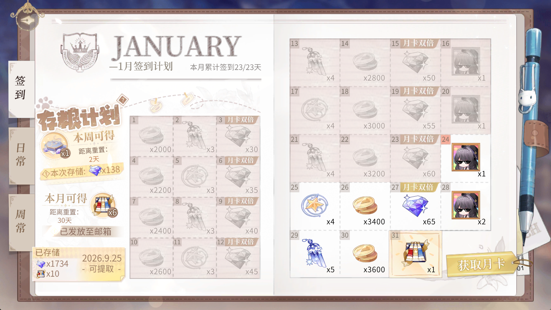 本来攒了一百多抽的,结果公主节II来的措不及防,关键是砸下去一百就一张歪的,我哭死……所以本人现在就这么点资源了(目移)……猫粮现在存了一千七,感觉我还算可以的?200好像就开过一次还是两次,不过意外的好像没有开到过太多的50诶