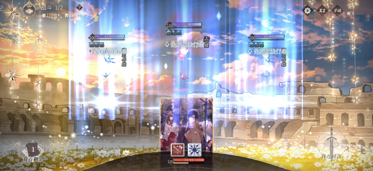 绘卷凛冬套满级,小技能双一(如果是双十第二轮的第二回合就可以结束了)