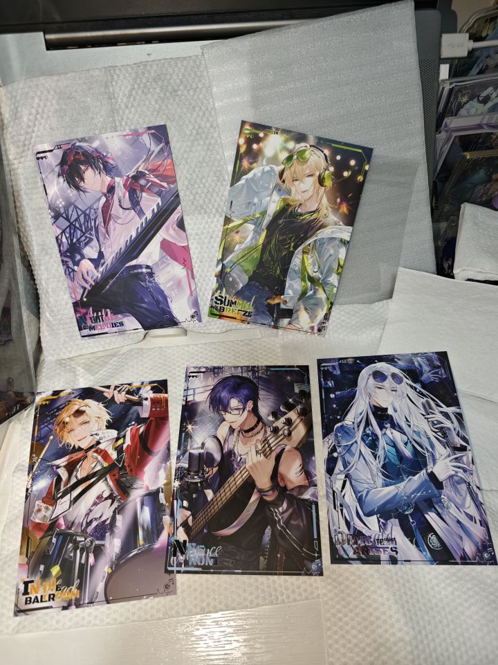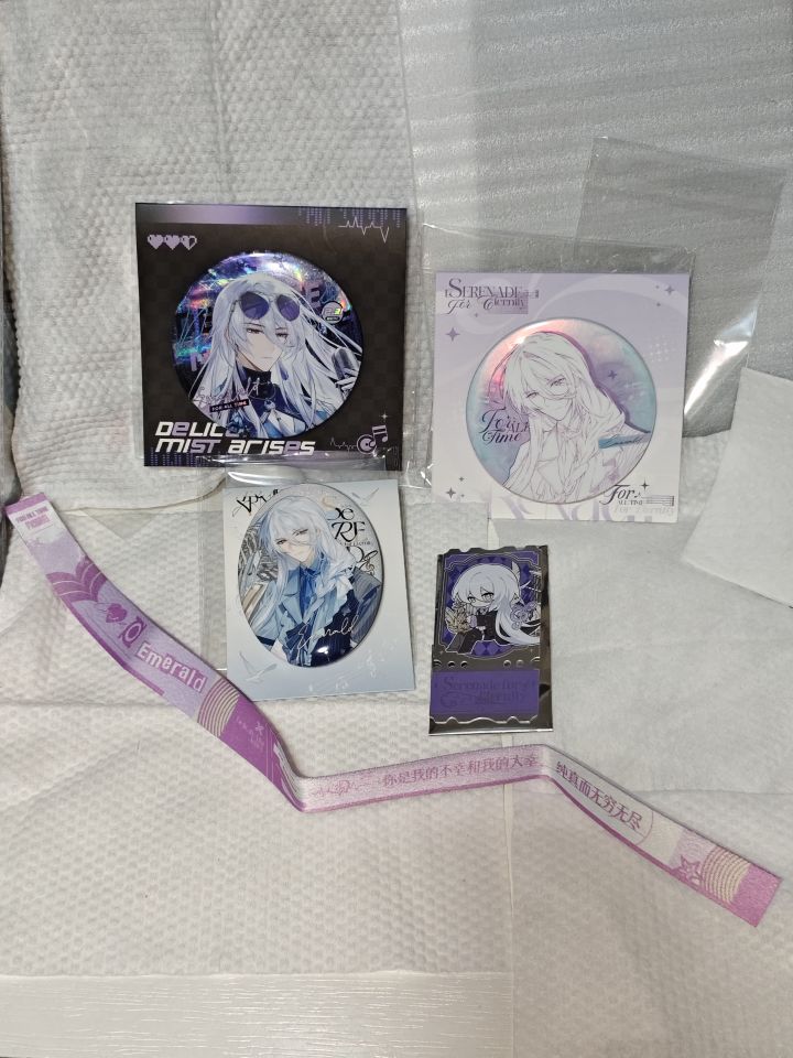 找了代购老师,刚刚好凑188,预售单比代购老师发货快先到了嘞。预售单的是演出证和全员丘丘人挂件。没想到牌是软的,有两个,未拆的那个懒得拿出来拍了,看上去很清透就是了。五人挂件比我小臂长,萌欸。五人拍立得涨价真的难过,不过发挥稳定,下个月再找代把一期的给吃了!包装袋也很喜欢,拍一下。全员满赠触感膜嘛?好看的。三个吧唧三种工艺,线稿绝美啊!满赠邮票感谢代购老师大晚上帮我换到了,萌萌的丘丘人!丝带