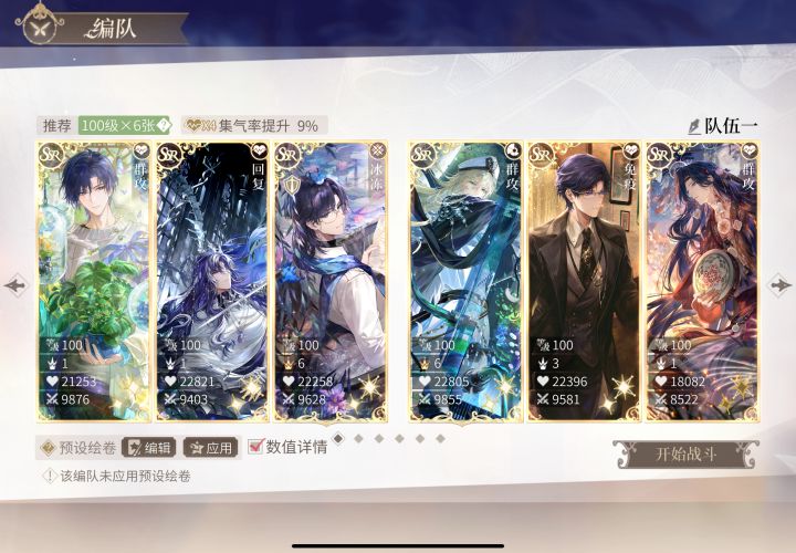 百分比依旧被部分克制的对手,但是养卡够多可抵这次基本用以下阵容可以几乎自动通关,少部分打不过的手动一下即可,操作简易。主要看前三张卡,再的放点控制冷冻之类的卡凑数就行,百分比卡会有点克制,少放点(有点退环境了orz),绘卷依旧推条(初始特技进度条+40/50那种)①号位高特蔓生虚像:新年的星提卡(当初卡池叠卡被迫叠到五特,长官,是我错怪了你……)。一技能降防+冻特级条2回合;二技能持续伤害+