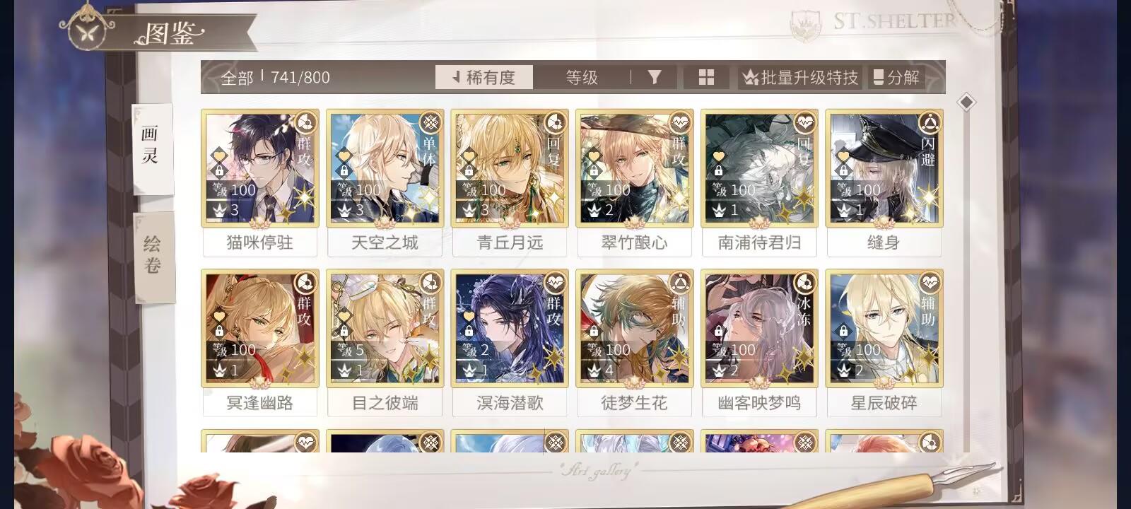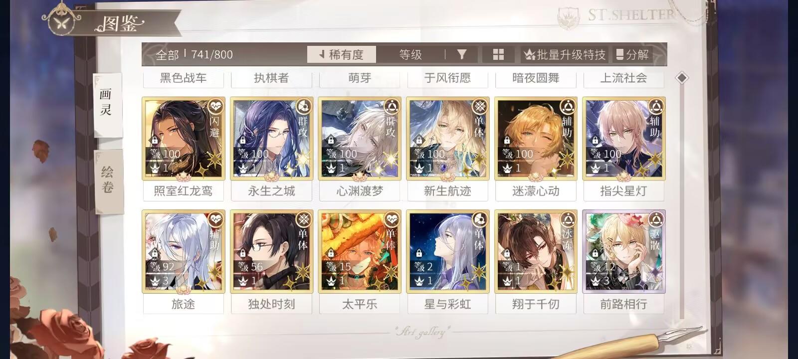 把两个十连折扣用掉了以为不会出结果出来了,希望到时候抽罗夏也那么幸运(话说主推好像就没提前出过,一直都是艾因和叶喧提前出)要是好用的话就养了,目前只有明日,执棋者,星与彩虹和花开盛时,感觉电影院打起来好费劲(采风打不了一点)
