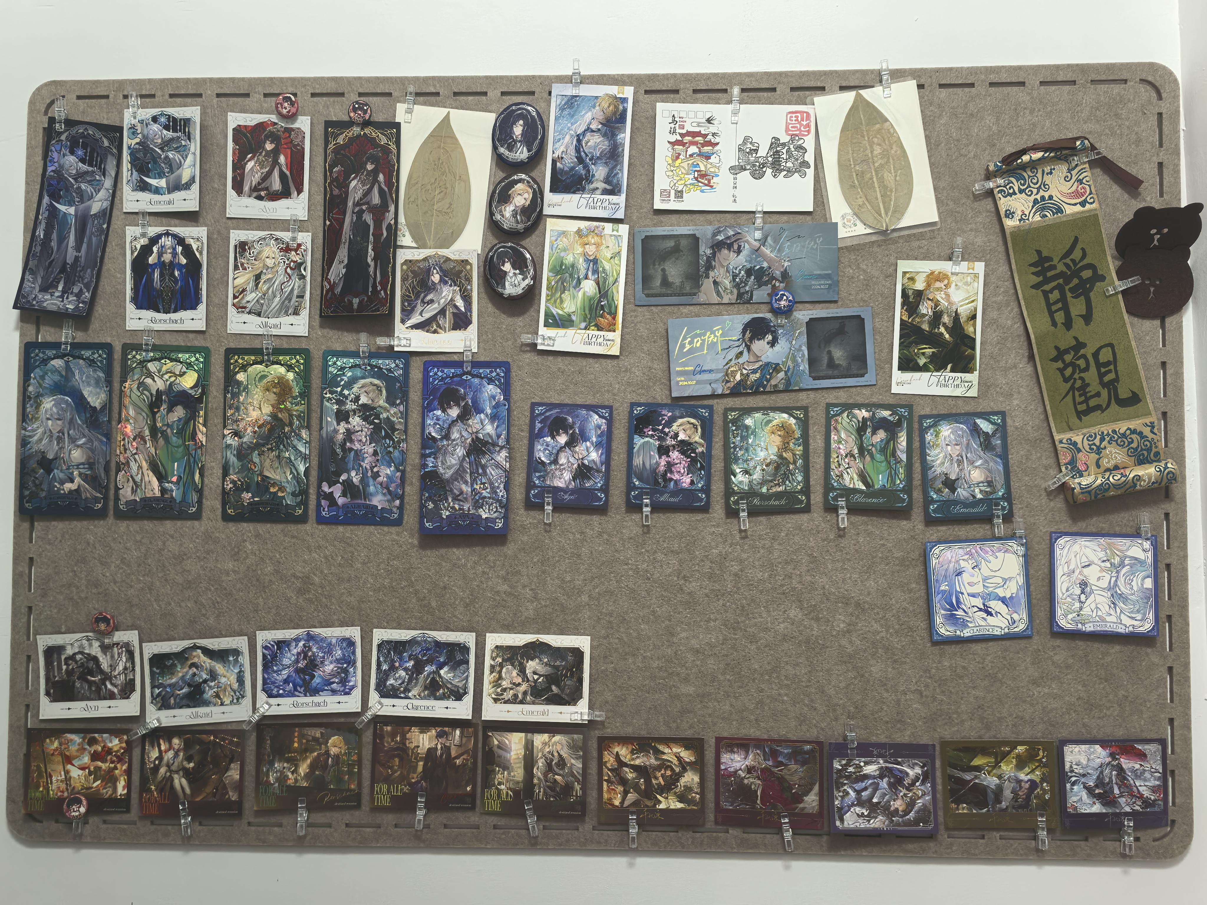 原来是周年礼盒,我还以为是阶段累充品先寄到呢每一张都好美,努力上墙,发现钉子不够了,加急下单中另外怎么拍立得刚到手就弯弯的啊怎么肥事最后我想问下,那个亚力克摆件大家都是怎么摆出来的呢