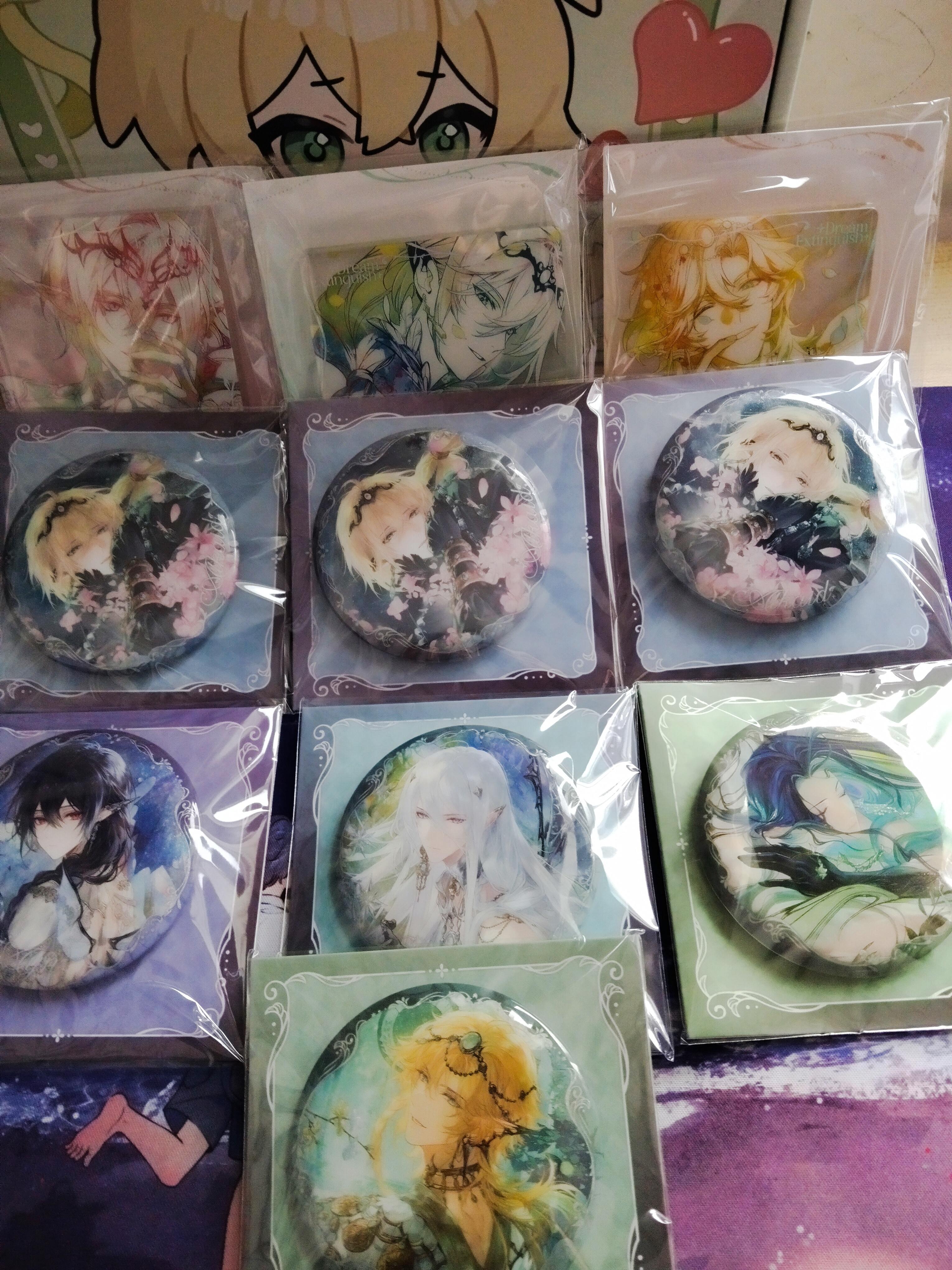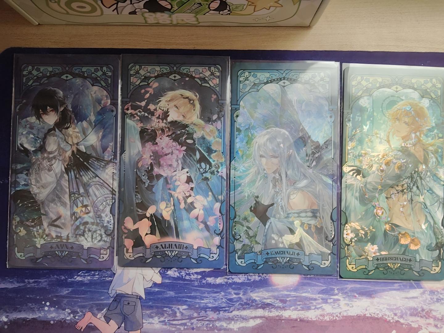 这个生日系列的摆件,真的好萌!!当初一看到就想到要买个防尘罩装起来,天天看!除此之外,马克杯、日历(2026年日历那批周边错过了,没买到)、画轴、帆布袋,也都很喜欢。由此可见,我挺注重实用性、观赏性的,哈哈哈哈哈!至于纸质类,比如拍立得,我就把桌面布置了一下,买了桌布,在定制了一块玻璃,把卡片放到玻璃下,既能保护好卡片又能观赏。而徽章,目前没有位置放置出来。后面再想想办法。
