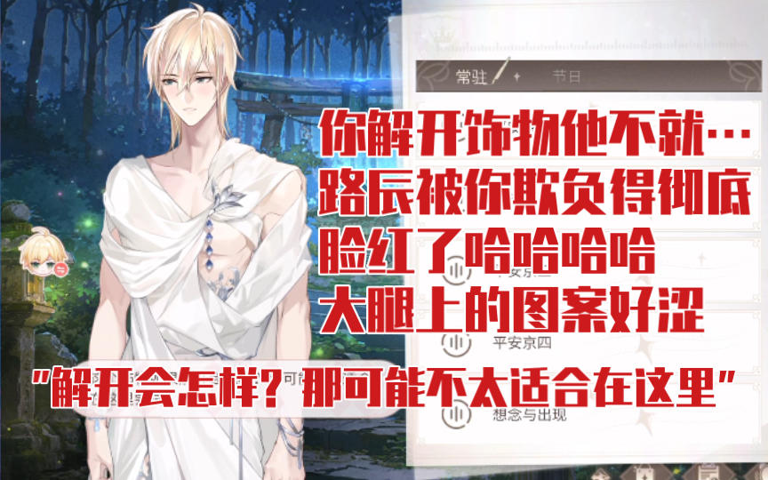 【时空中的绘旅人】玩得好大!他的脸好红大腿上的图案好涩 | 路辰阴阳师联动服装『皎明不染』