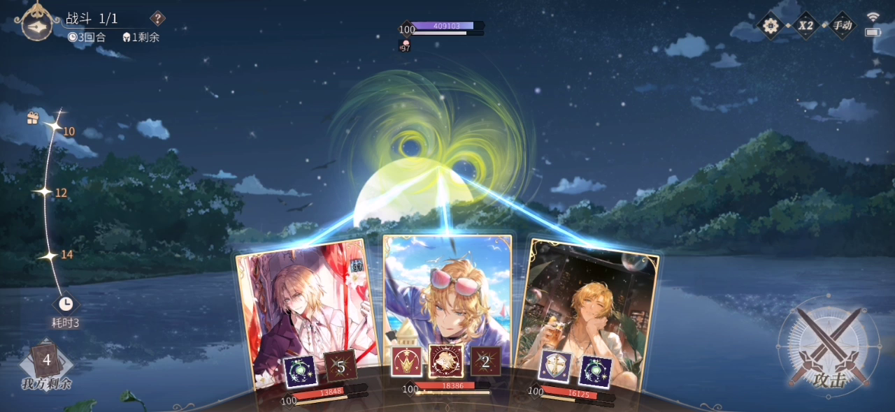 借了一张满特红月,自己有一张85级艾因活动sr,一张40级花与锁链sr,剩下三张r卡随机应变 试了好多遍,主要还是运气好,过不了高难本的姐妹可以参考一下😆