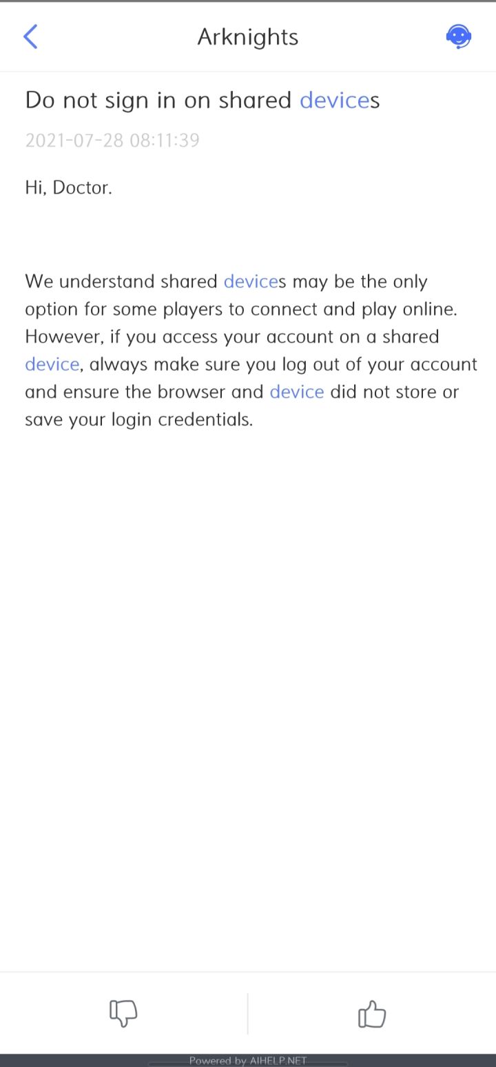 图一图二均截自图三右下角的“Customer service”,点击后可转入图四的界面,图四右上角可联系客服。当然你也可以直接写邮件给美服官方:arknights.en.cs@yo-star.com,我已经跟客服询问是否具可以清除全部设备的登陆信息,暂时没有回应,后续观望一下再写邮件过去吧(苦笑)。