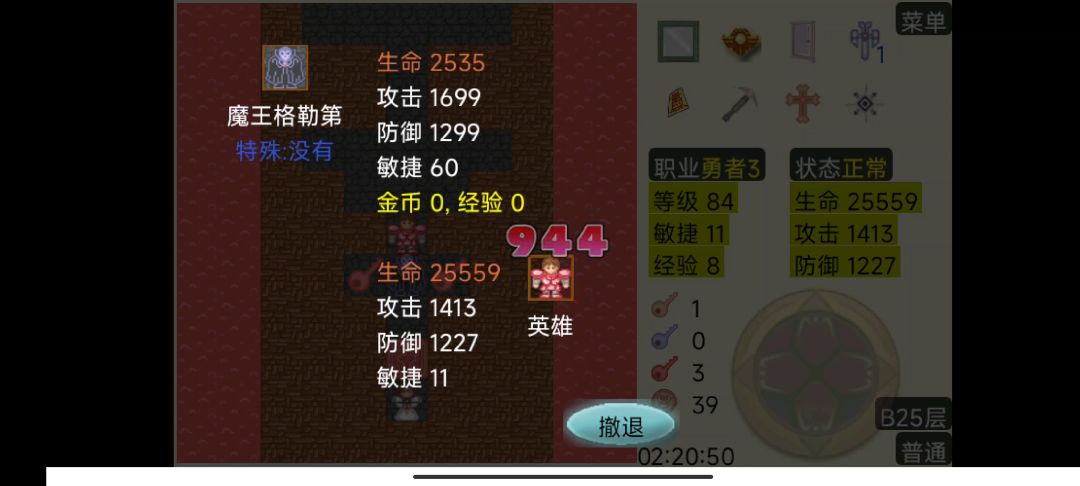 第一次玩带转职的魔塔...按以往看到网上评论,印象从弱职业往强职业体验一周目选的最中间:霸者转职。这个职业不会中毒,衰弱,所以红绿瓶子没用,技能是受伤害能反击...好吧,我也不知道这技能魔塔里这到底有多大用...直接上最终数据图,最后走的假结局。建议前期只加防,打到地下十几层时遇到红色拿剑的盔甲骑士和红色平头怪时,就要把防御升到600~700大约是攻击800左右样子开始点防,印象是这样,记
